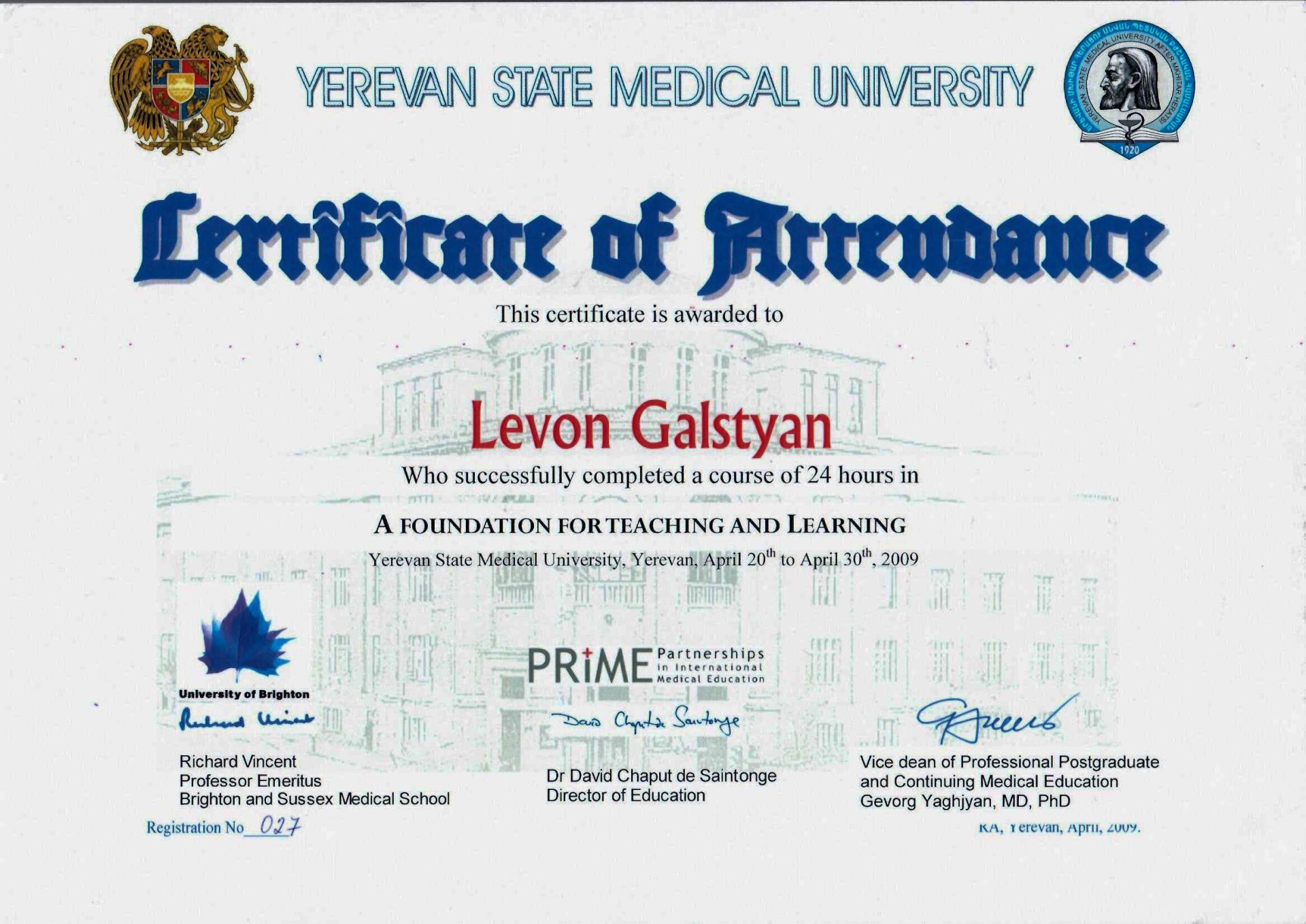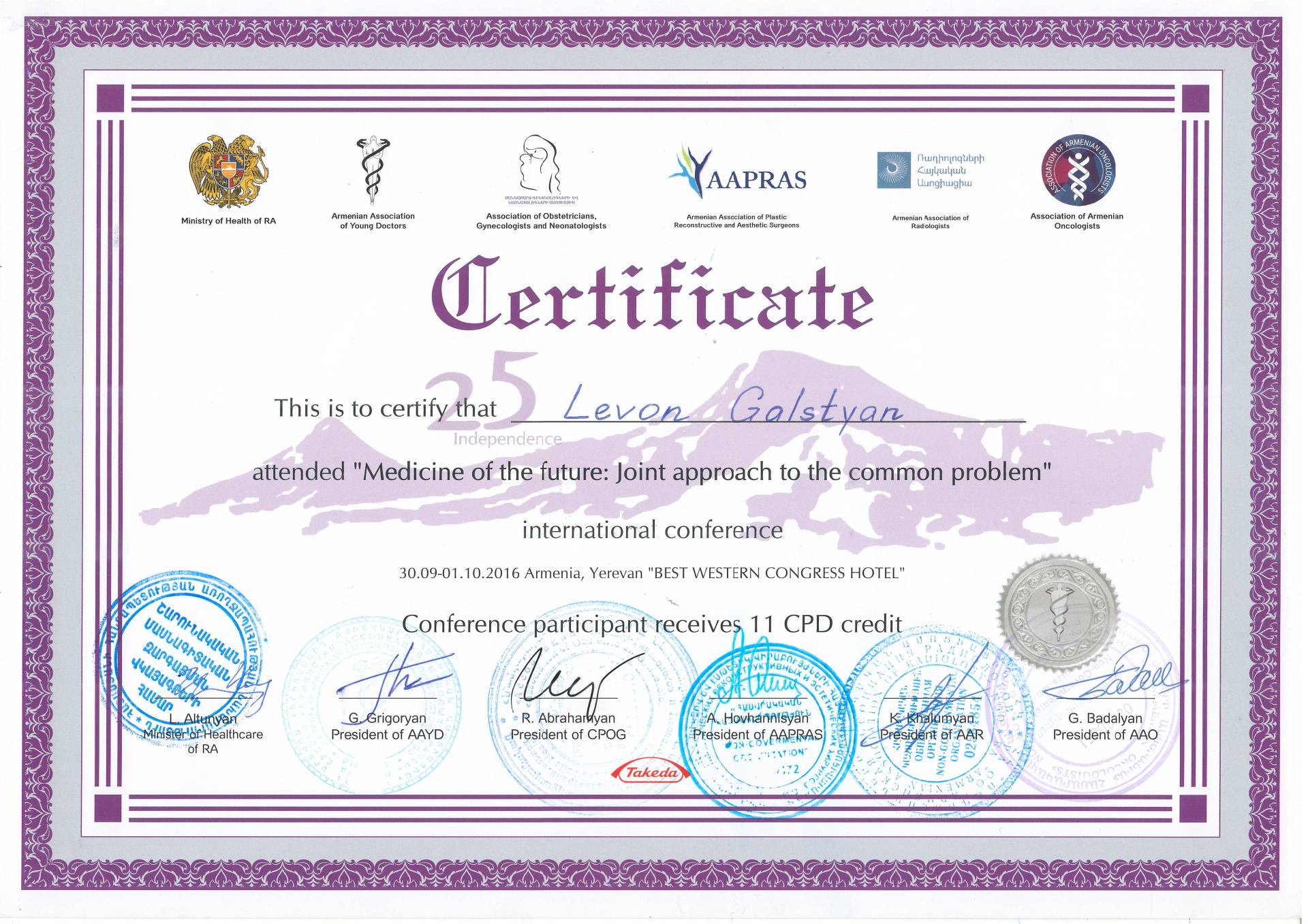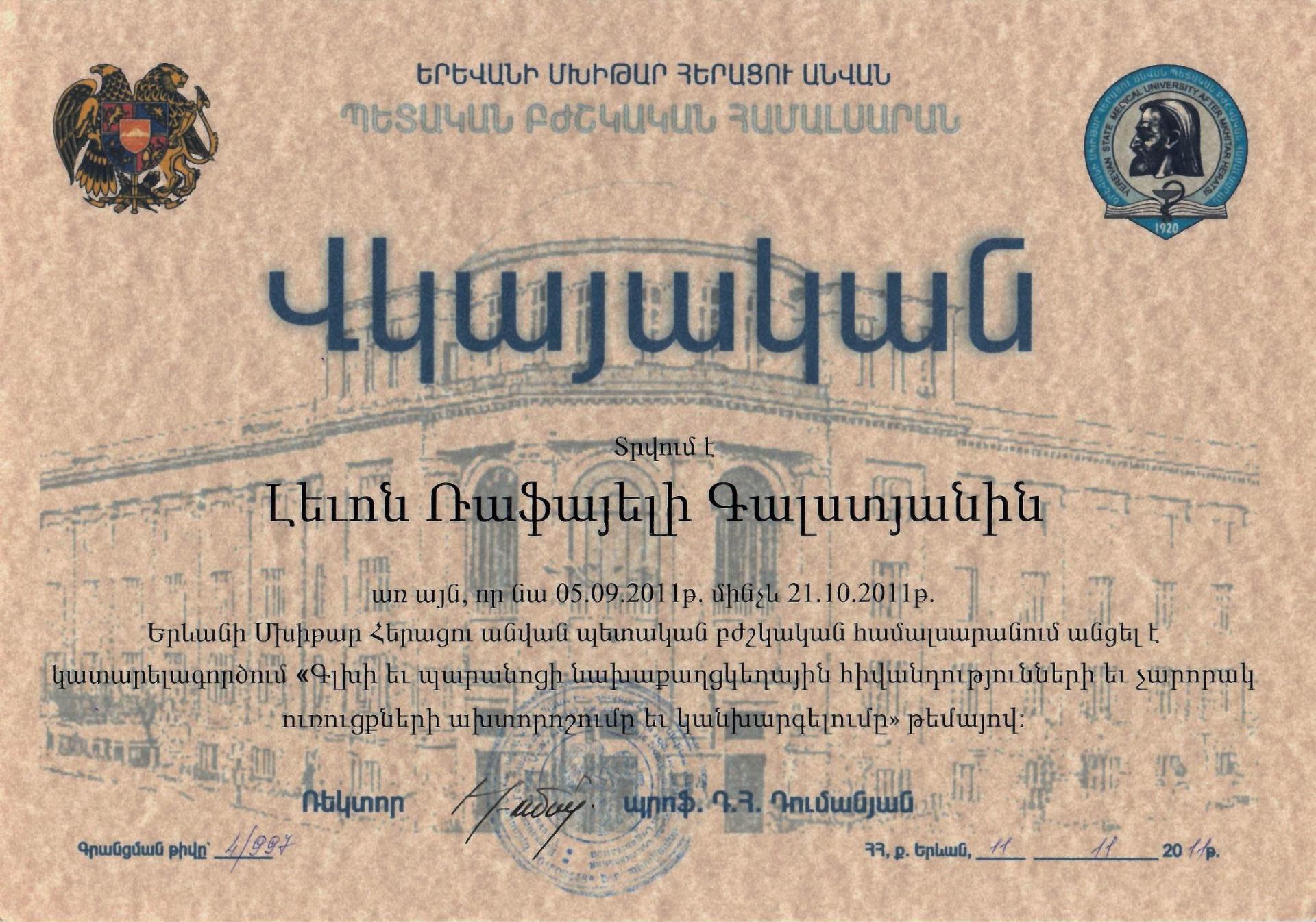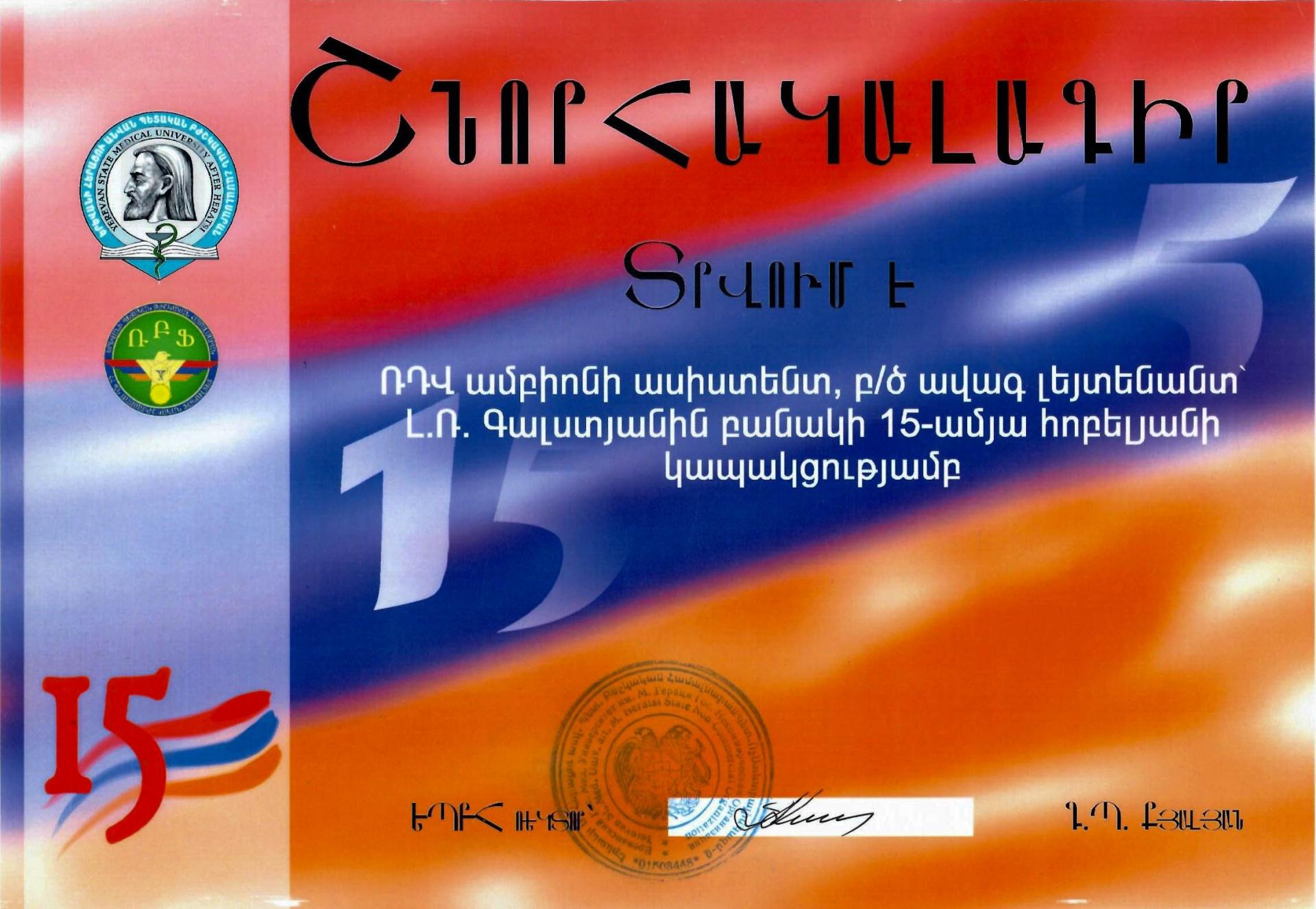 Դոկտոր Գալստյանը 2003 թ - ից առ այսօր