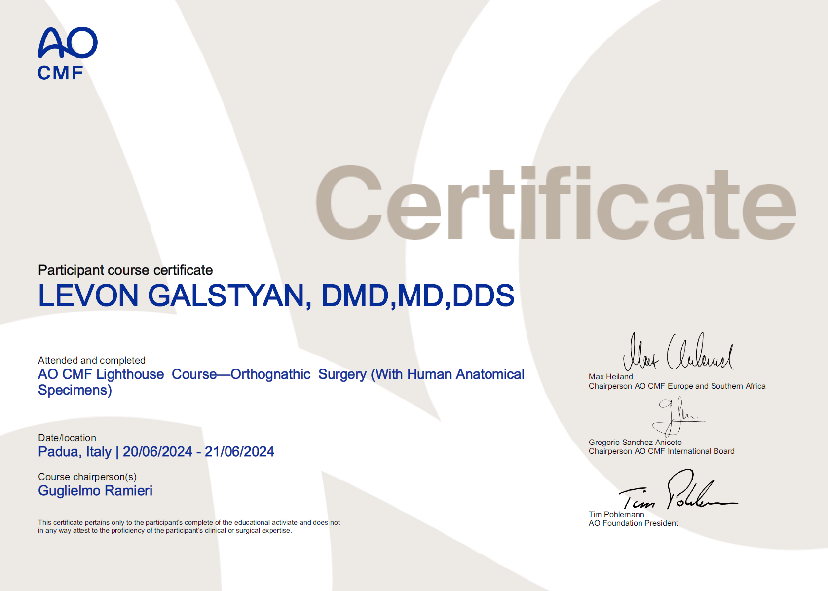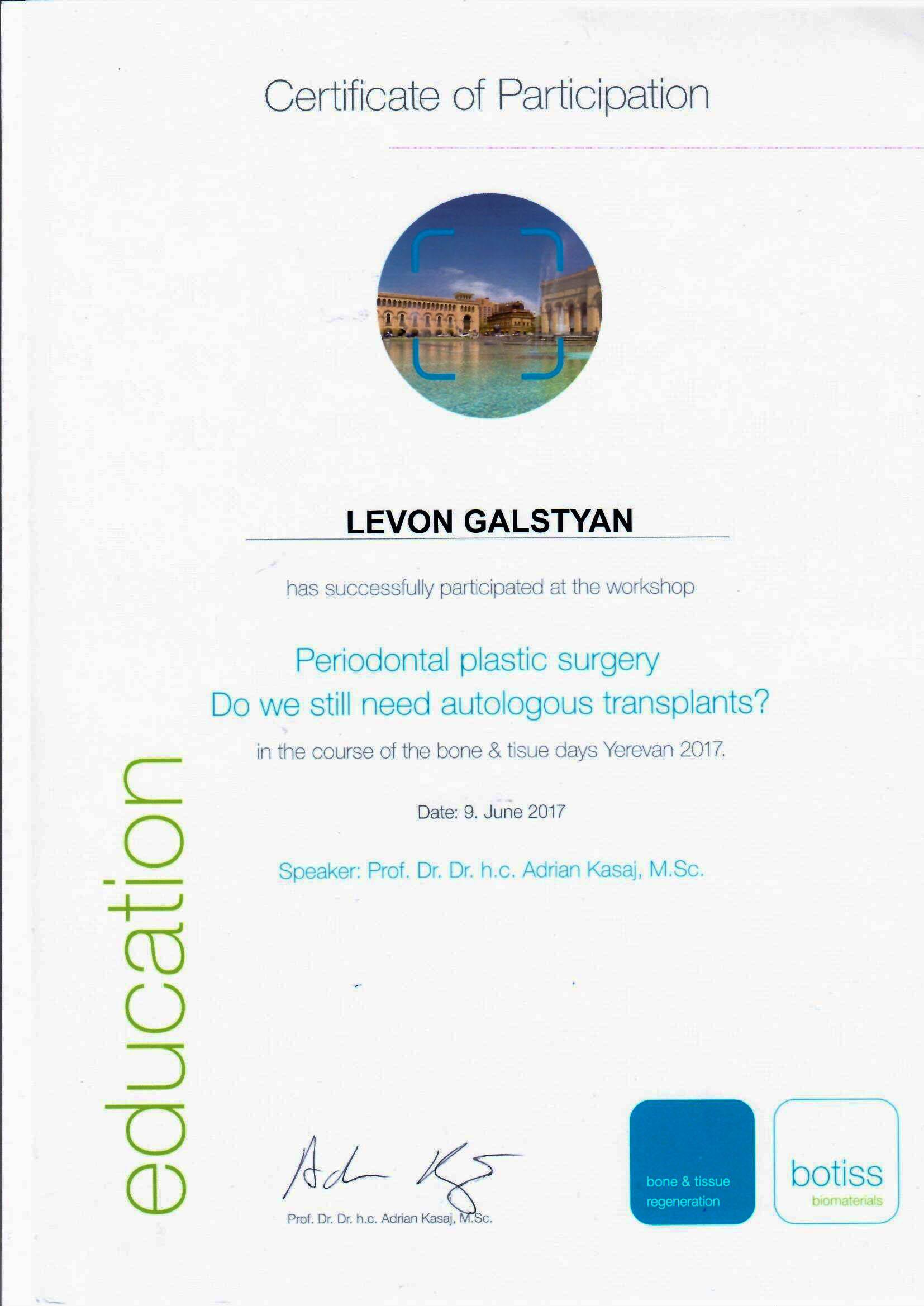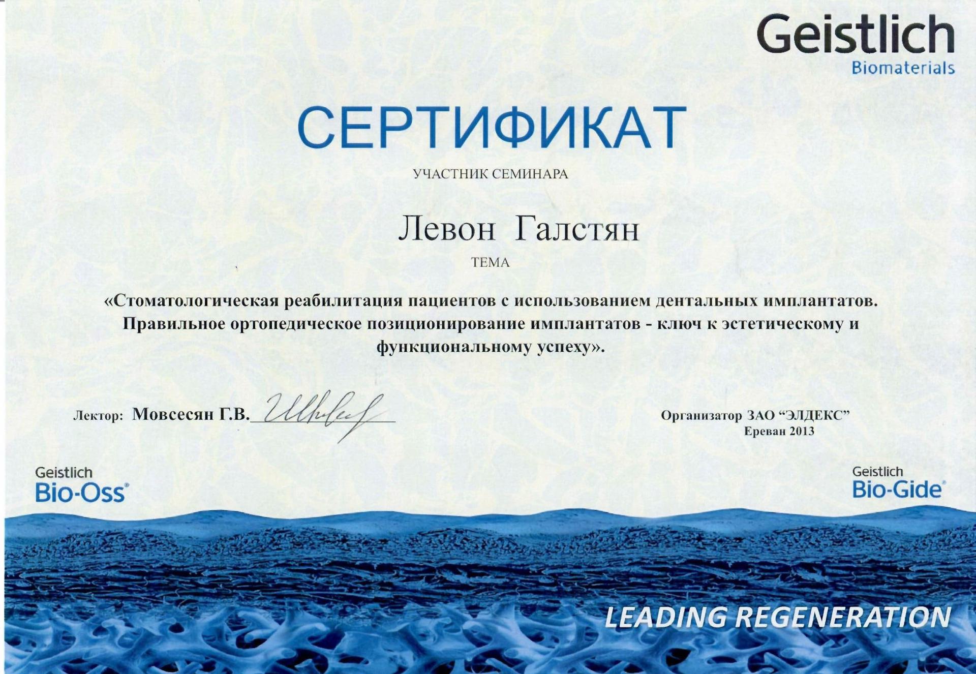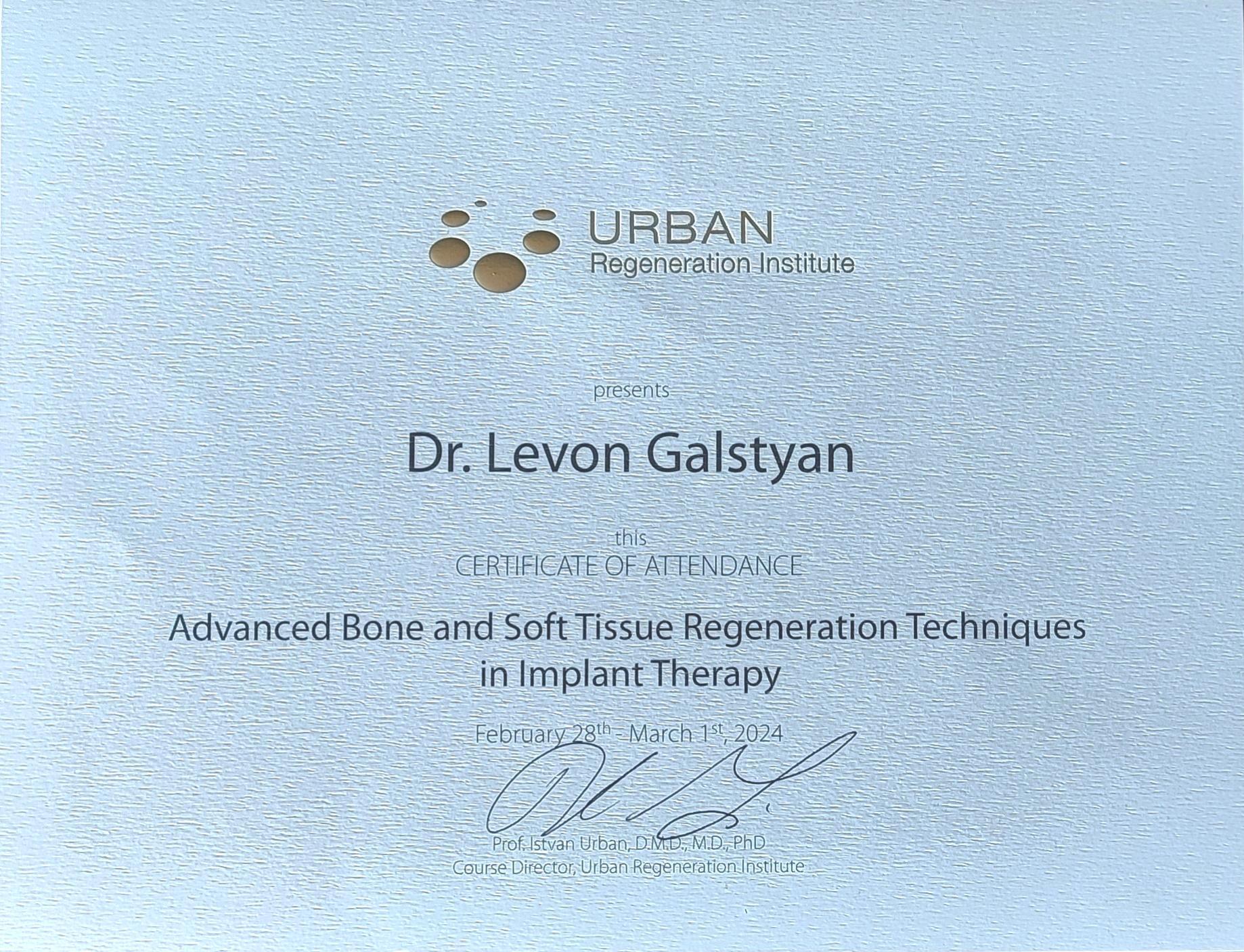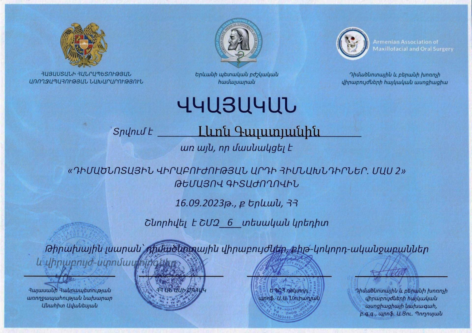 Բժիշկ Լևոն Գալստյանը բերանի և դիմածնոտային համակարգի վիրաբույժ է, ով առավել հայտնի է առաջադեմ վիրաբուժական տեխնիկայի (ներառյալ ատամնաբուժական իմպլանտների, ֆունկցիոնալ էնդոսկոպիկ սինուսների վիրահատություններ և դեմքի էսթետիկ պրոցեդուրաներ) կիրառման իր փորձով: Բժիշկն ունի բարդ վնասվածքների բուժման մեծ փորձ, ինչպիսիք են, օրինակ՝ հրազենային և պայթուցիկ վնասվածքները, դեմքի նորագոյացությունները և բորբոքային մի շարք հիվանդություններ: Բժիշկ Լևոն Գալստյանը նաև նվիրյալ մանկավարժ է․ իր հարուստ գիտելիքներն ու փորձը՝ ժամանակակից վիրաբուժական մոտեցումներով, փոխանցում է համալսարանականներին և, իհարկե, կլինիկական բժիշկներին: Իր կլինիկական և դասախոսական կերպարներից զատ՝ բժիշկ Լևոն Գալստյանը առաջատար մասնագետ է ժամանակակից թվային տեխնոլոգիաները իր պրակտիկայում կիրառելու հարցում, ինչը ներառում է, օրինակ՝ 3D տպագրության օգտագործումը ճշգրիտ վիրաբուժական պլանավորման և հատուկ իմպլանտների ստեղծման համար, վիրտուալ վիրաբուժական պլանավորումը՝ ընթացակարգերի ճշգրտությունը բարձրացնելու համար, և արհեստական բանականության կիրառումը՝ ախտորոշման և բուժման պլանավորման նպատակներով: Բժշկի նորարարական և հաճախորդամետ մոտեցումը՝ զուգորդված նորագույն տեխնոլոգիաների կիրառմամբ, երաշխավորում է, որ յուրաքանչյուր բուժառու կստանա անհատական և, իհարկե, առաջադեմ վերաբերմունք՝ հետագայում հաստատելով բժիշկ Լևոն Գալստյանի վաստակը բերանի և դիմածնոտային համակարգի վիրաբուժության ոլորտում: